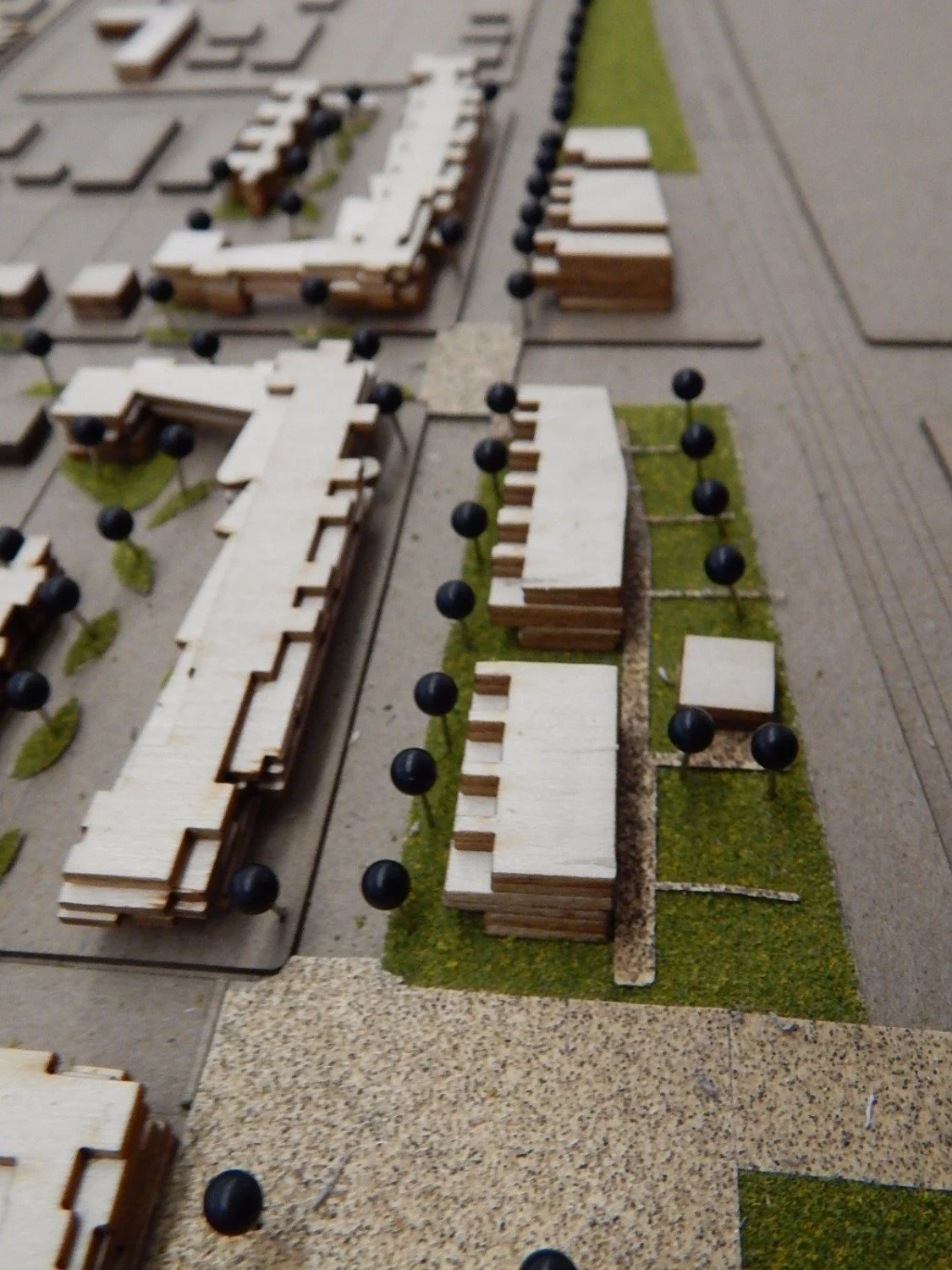 Through a ten‑month research and design process, we analyzed the neighborhood’s existing fabric—its walkable block structure, missing‑middle housing types, and strong potential for mid‑density urban life—and developed phased interventions at the 5‑, 10‑, and 20‑year marks. The proposals focused on strengthening walkability, activating key corridors like Tamarind and Rosemary, and creating safer, more engaging streetscapes with more “eyes on the street.”